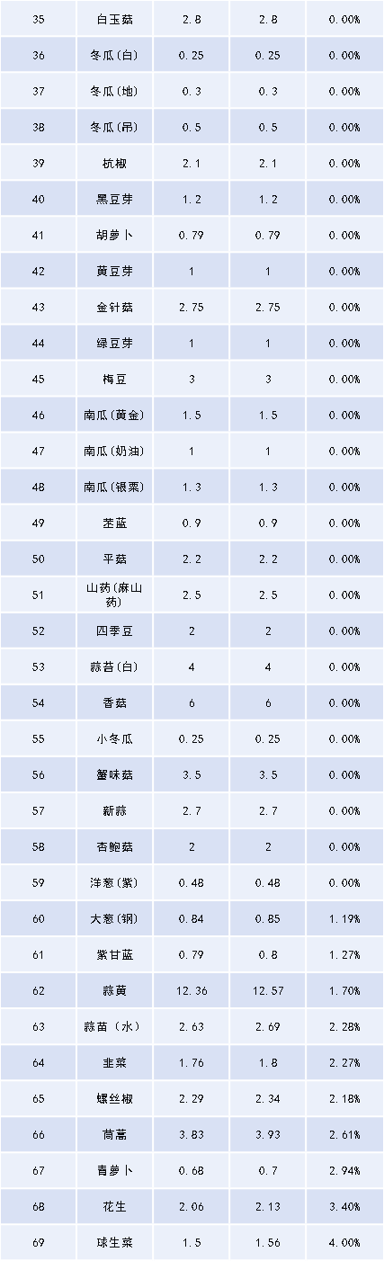 四、本期蔬菜價(jià)格漲跌表